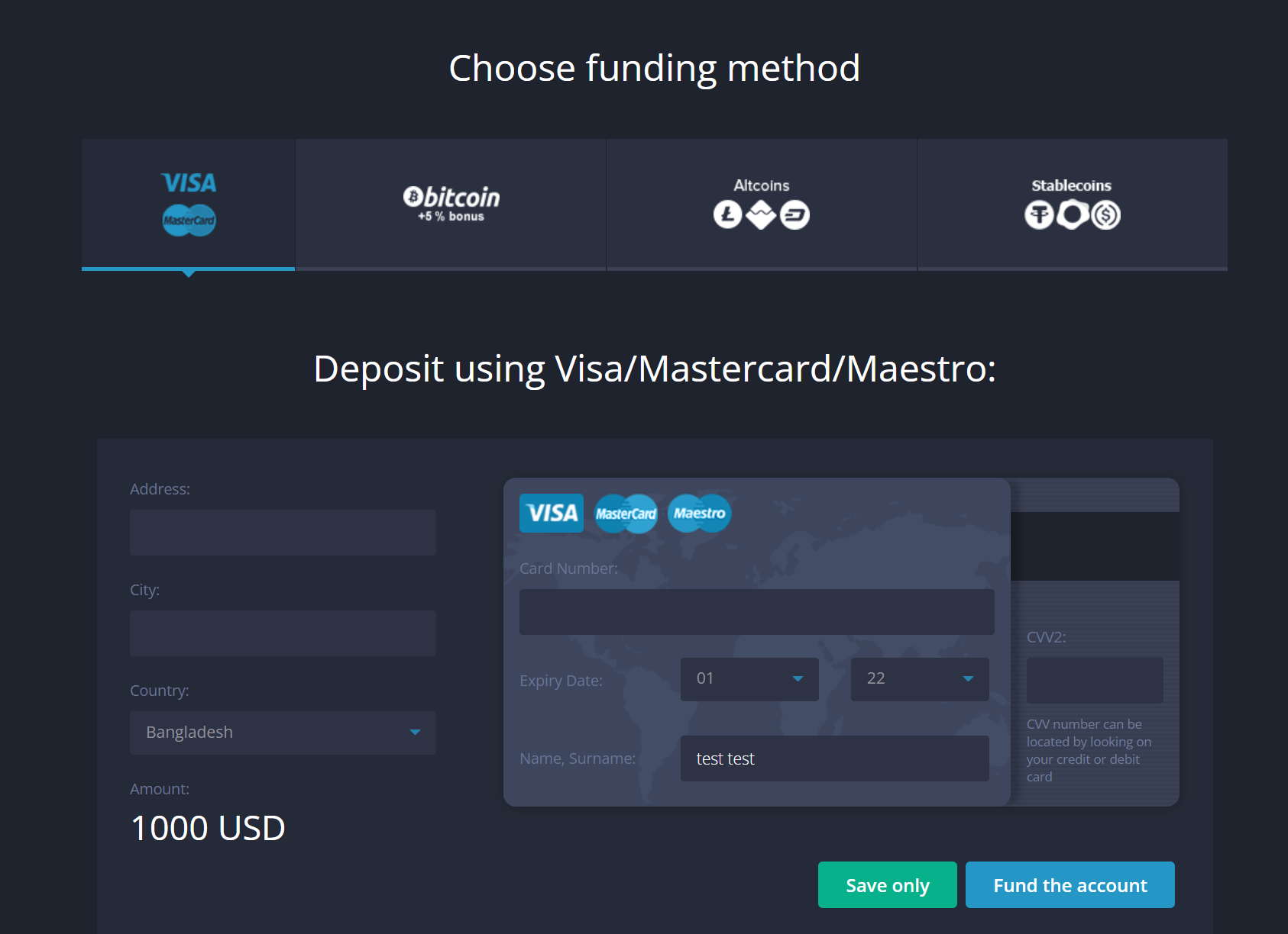 | Visa/Mastercard | Hours | 5% | 200,000 |